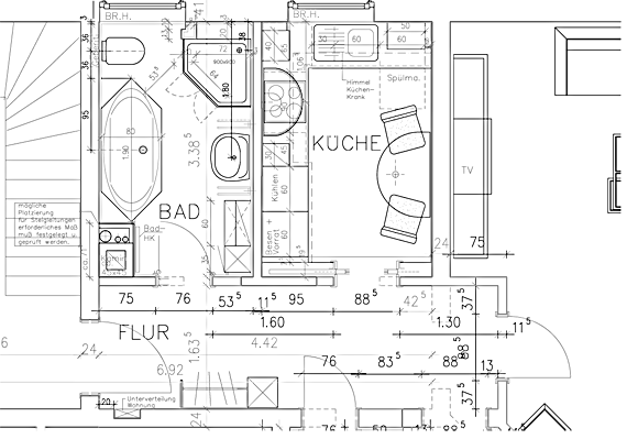 Planung von Bad und Küche, Maßstab= 1:20 |